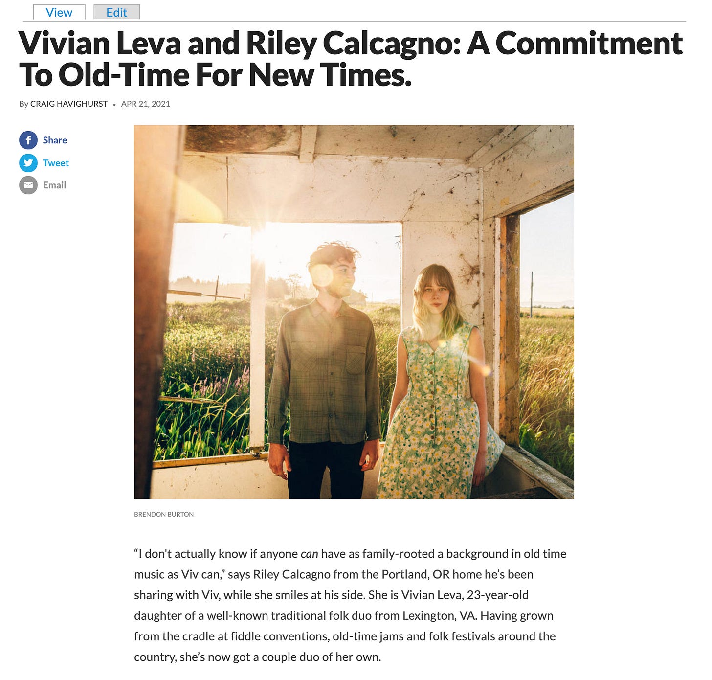 The new album from young couple Vivian Leva and Riley Calcagno reminds me of those early days of discovery with Gillian Welch and David Rawlings, in that here is a cool, contemporary take on old-time music. While Gil and Dave learned the music as outsiders, Vivian and Riley were born into the tradition. Click here or on the image to read the profile and hear the audio Q&A.