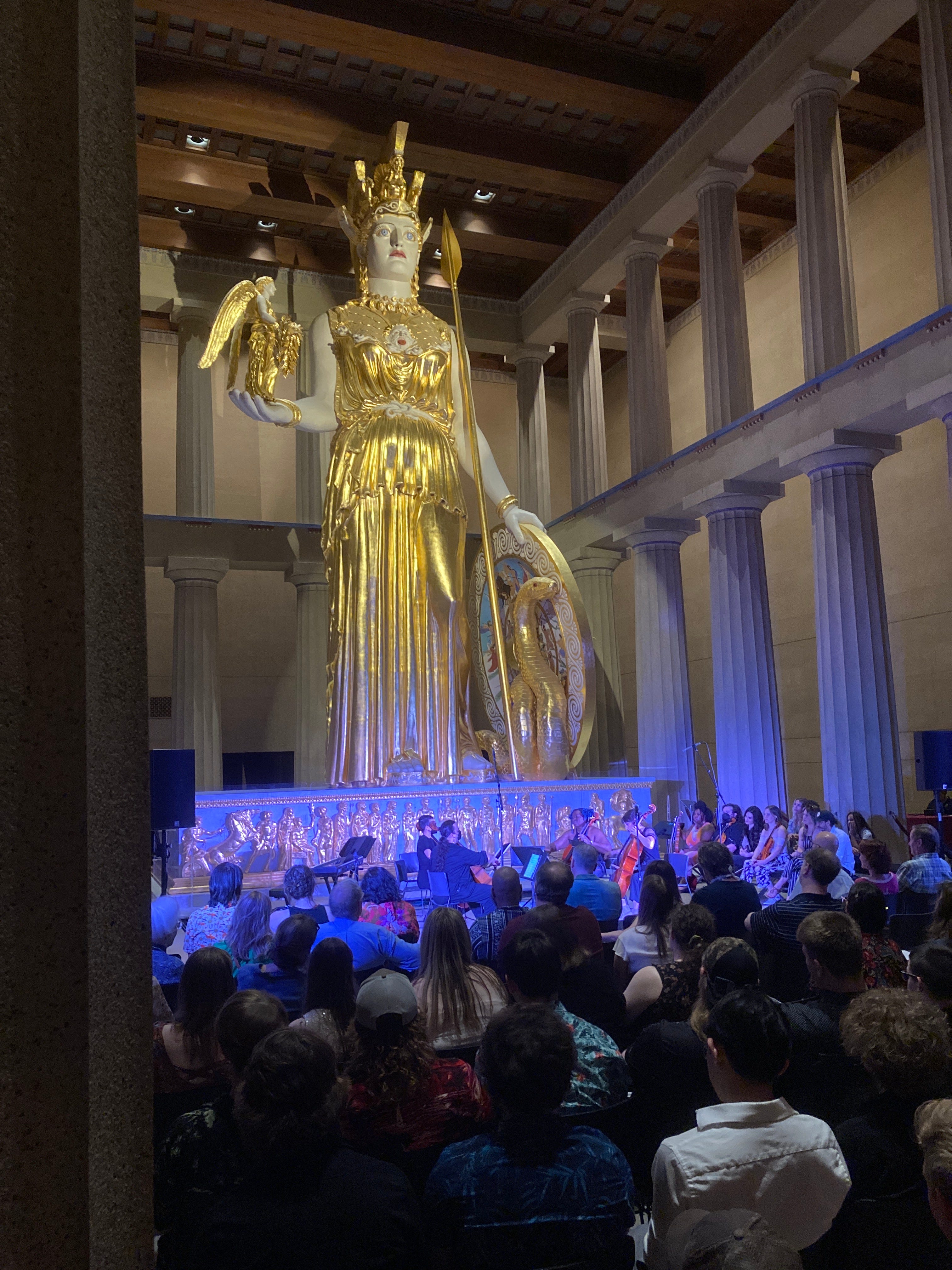 I’d never been to a concert in the famous Athena Room, the interior of Nashville’s Parthenon in Centennial Park before this spring (photo below). But I made a point to attend a night at the Parthenon’s ECHO chamber music series featuring a program entirely composed by cellist Larissa Maestro, whom I’d just profiled for The String. I also saw her about the same time radiating kind energy from the house band of the Love Rising concert, which was Music City’s howl of anger at Gov. Bill Lee’s abusive new laws targeting transgender health care and, for some reason, drag shows. That’s another rant, but it was a real joy getting to know Larissa because of her impact on the Americana scene: