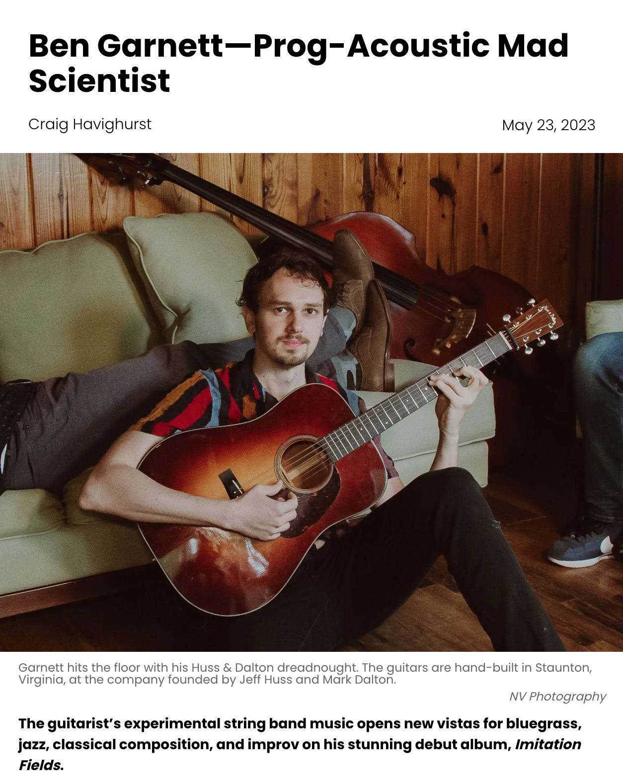 I don’t write freelance pieces enough these days, but I was really excited to work on this one. Ben Garnett is a dynamic young guitar player who I met about five years ago. I’ve enjoyed watching him find his feet in Nashville and grow as an artist. He’s made a bold and inventive debut album and I wrote a long piece for my old friend Premiere Guitar that actually came out in print! Click to see the online print facsimile edition.