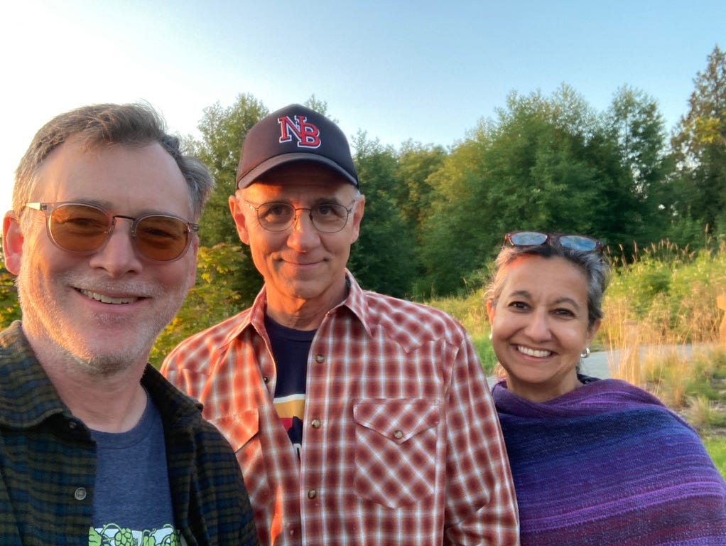 That set up a rather uncanny coincidental experience that took place just two weeks later. Peter Rowan is one of only two surviving members of the Old And In The Way band, because Jerry Garcia, fiddler Vassar Clements and bassist John Kahn have passed on. The other living alum is mandolinist David “Dawg” Grisman, one of the most important acoustic musicians and composers ever and as of last week one of the newest inductees in the Bluegrass Music Hall of Fame. I had made a plan months ago for a long delayed visit to my friends’ relatively new home near Port Townsend, WA on the Olympic Peninsula. Besides being gorgeous country with great culture, it’s also where David Grisman lives. Through a friend who made a warm introduction, I was able to spend a couple of hours with Dawg on the day before my flight home. I taped our conversation and while it was not very high fidelity, I’m going to figure out a way to make use of that as I cover Grisman’s HOF induction this fall. Wild as it is, friend Cliff soon followed my path out to Port Townsend to interview Grisman on camera for the Jerry Garcia exhibit. I don’t know what it means that I’d have meaningful encounters with these two powerfully connected American innovators within two weeks of each other, but I won’t forget it. It seems my summer is as blessed as the Atlanta Braves, who have the best record in baseball. Thanks to my hosts in WA, dear old friends JD and Sara (pictured below). They’ve set up a beautiful life out there and were gracious to share it with me.